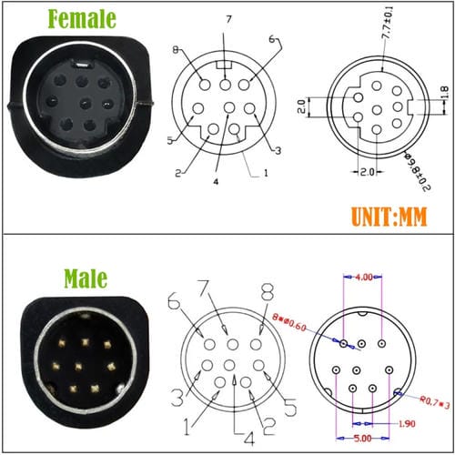 El Cable dispone de una interfaz macho a hembra, facilitando la Conexión entre dispositivos con terminales Mini Din de 8 pines.