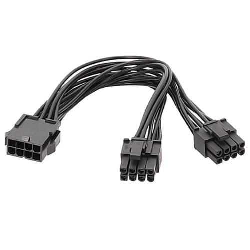Su función es dividir una Conexión de Alimentación de 8 pines en dos conexiones de 6+2 pines y 8 pines para alimentar múltiples fuentes en la Tarjeta gráfica.