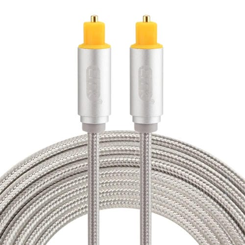 Cable de Audio Óptico Digital EMK 3M OD4.0MM Chapado en Oro con Cabeza Metálica Tejida Toslink Macho a Macho (Plateado)