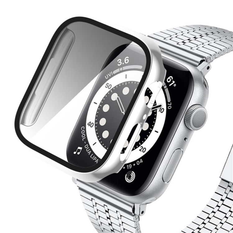 Caja de Reloj PC con Película Vidrio Templado para Apple Watch Series 9/8 y 7 de 45mm (Plateado)