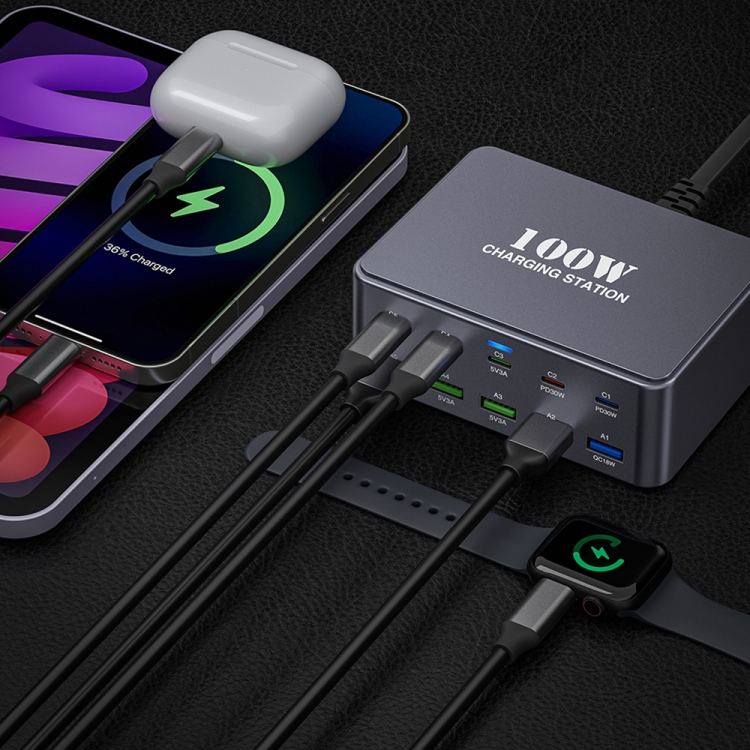 5. Cada puerto tiene protocolos de carga rápida y distribuye de forma inteligente la corriente y el voltaje