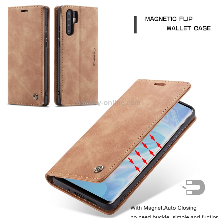 Estuche Multifuncional Cuero Caseme-013 para Huawei P30 Pro con Tapa Horizontal, Ranura para Tarjeta, Soporte y Billetera (Marrón)
