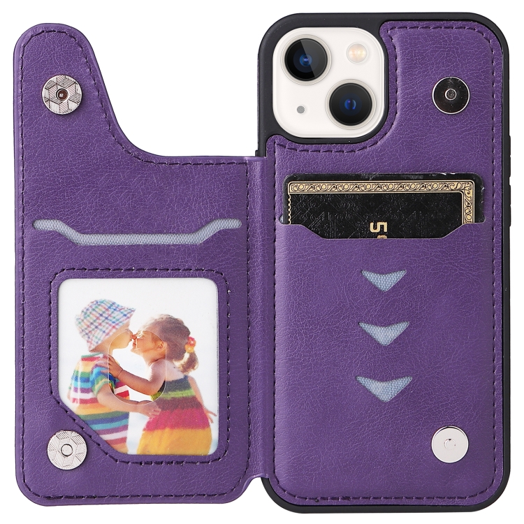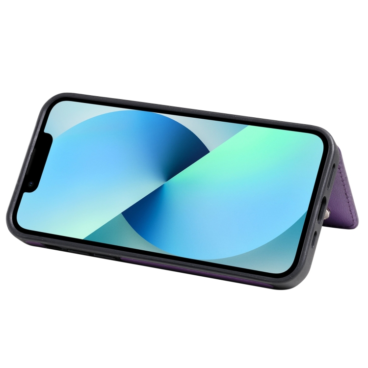 Funda Doble Hebilla con Cremallera para iPhone 13 Mini (Púrpura)