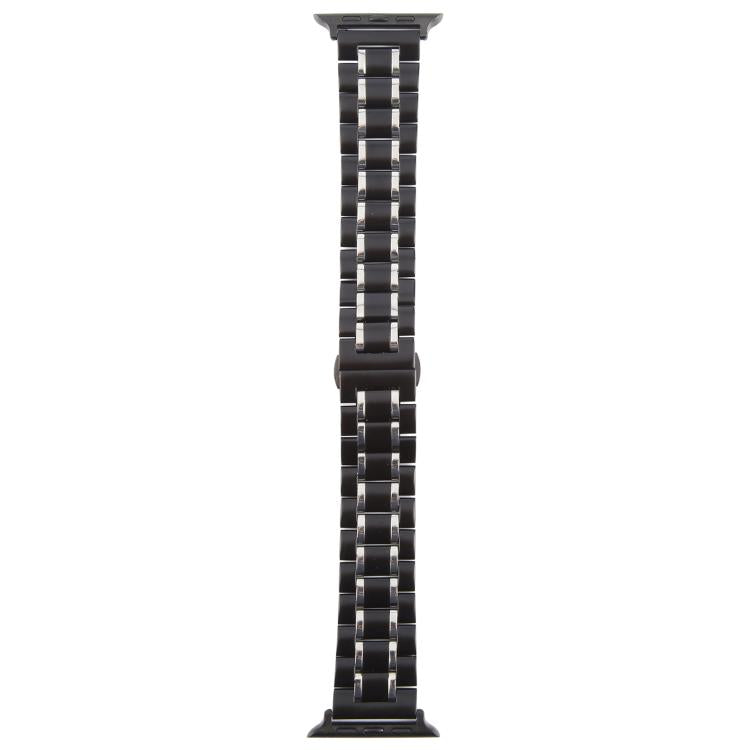 Correa de acero inoxidable con cinco cuentas y hebilla de mariposa para Apple Watch de 46 mm, 49 mm, 45 mm y 44 mm (negro y plateado).