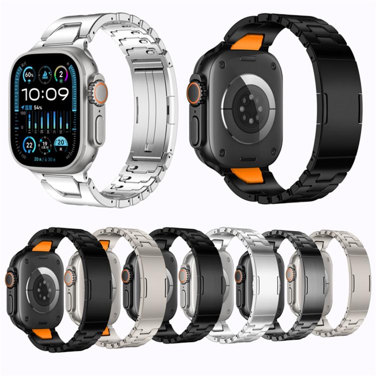 Correa de acero inoxidable con hebilla de mariposa y liberación rápida tipo H para Apple Watch de 42 mm, 41 mm, 40 mm y 38 mm (titanio)