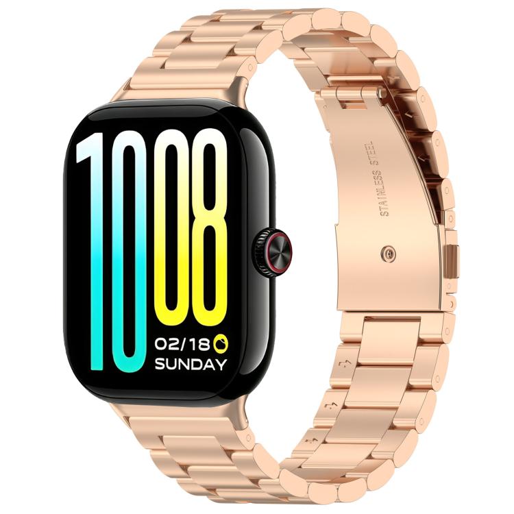 Correa de acero inoxidable con hebilla plana de tres cuentas para VivoWatch GT 2 / iQOO Watch GT 2 (oro rosa)