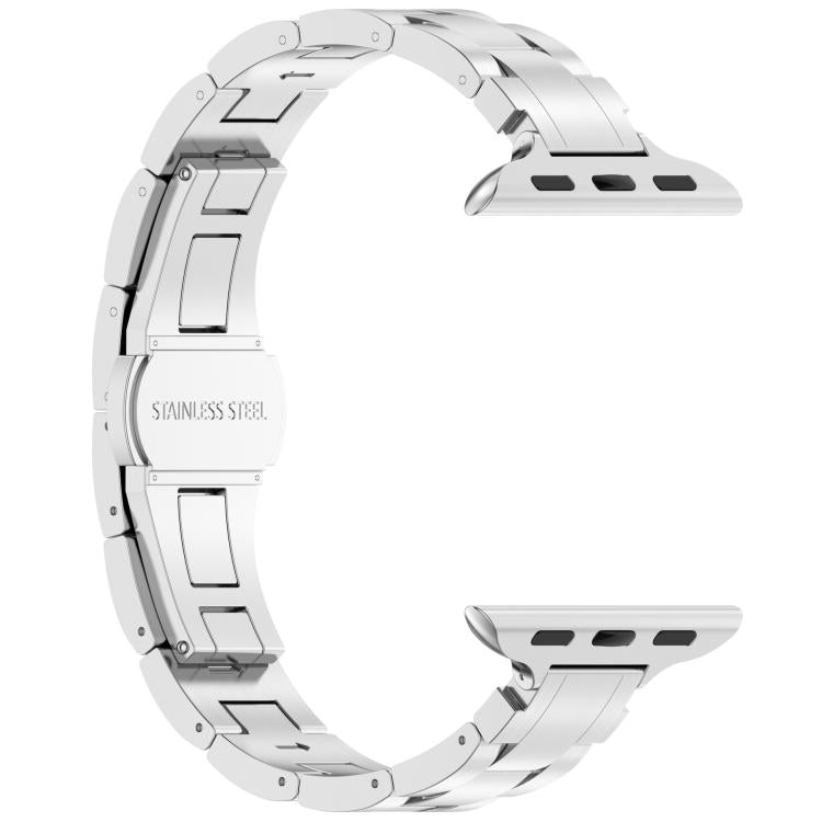 Correa de aleación de titanio con hebilla de mariposa de tres cuentas para Apple Watch de 46 mm / 49 mm / 45 mm / 44 mm (plateada)
