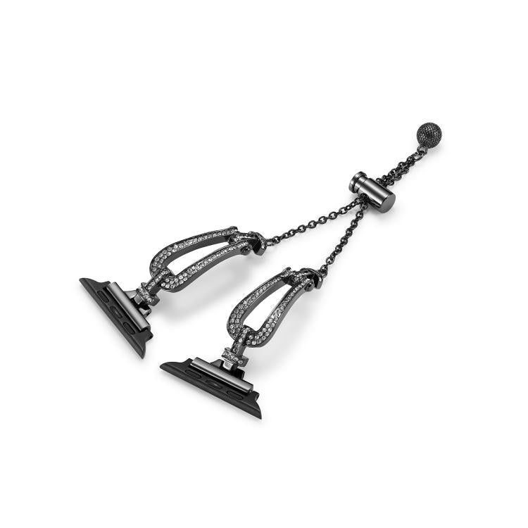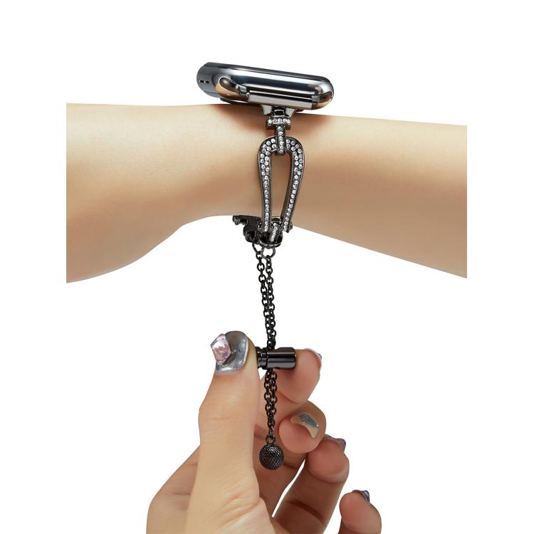 Correa de aleación de zinc con diamantes en forma de U para Apple Watch de 42 mm, 41 mm, 40 mm y 38 mm (negra)