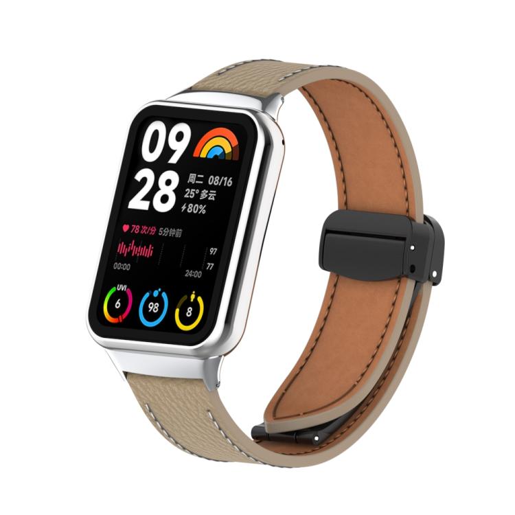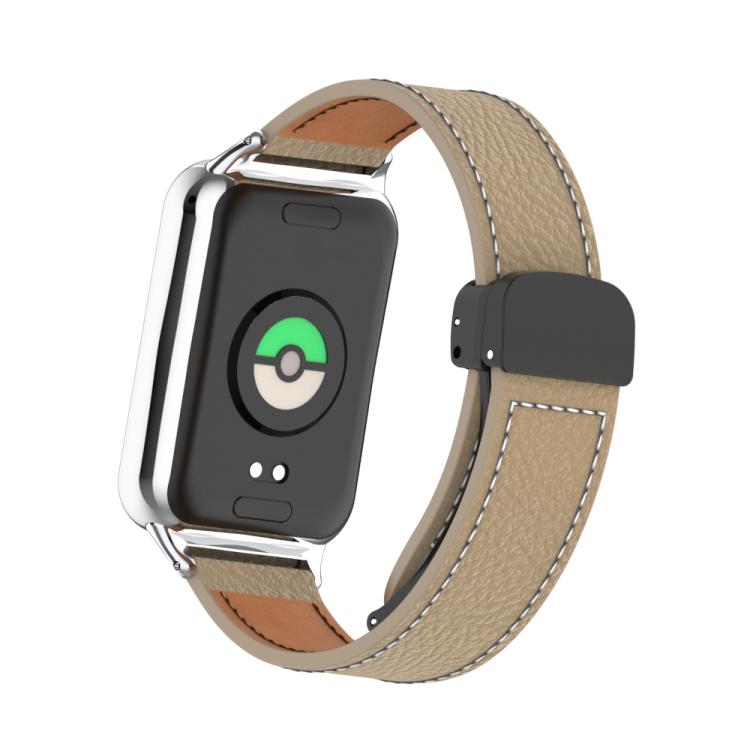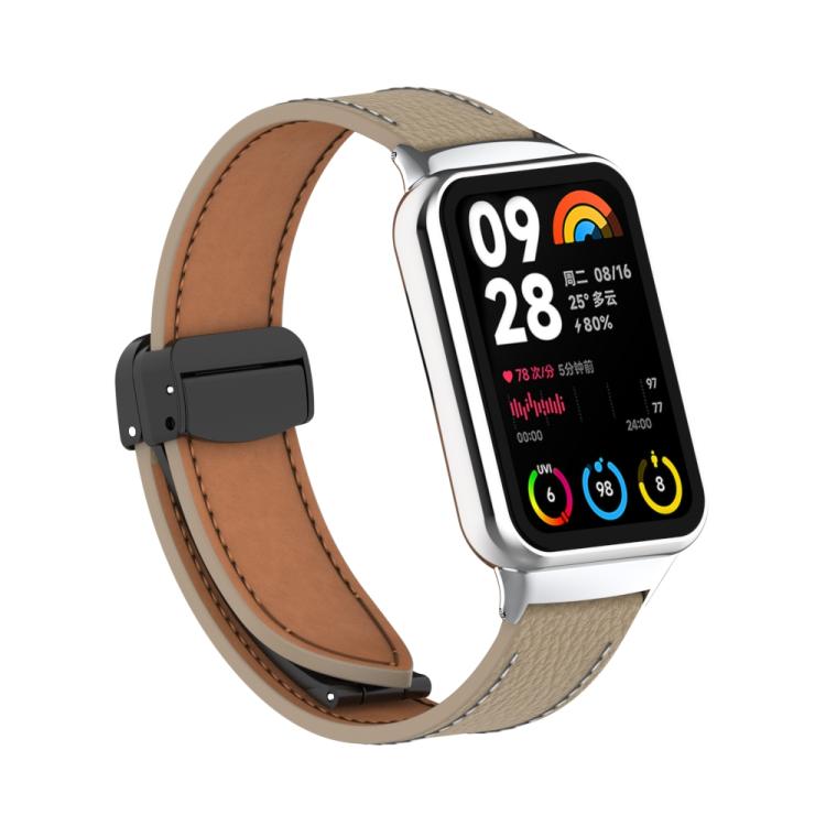 Correa de cuero con hebilla magnética negra y textura de lichi para Xiaomi Smart Band 9 Pro y Redmi Watch 5 (color café)
