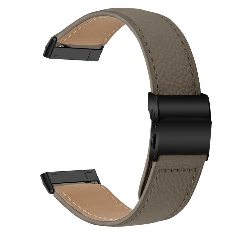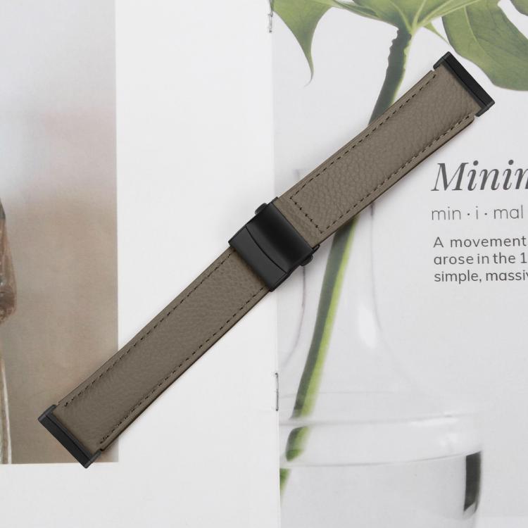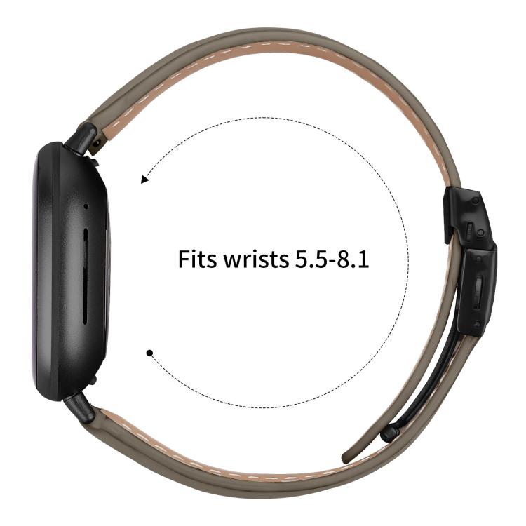 Correa de cuero con hebilla trasera de tortuga negra con textura de lichi para Fitbit Versa 3/4 (gris)