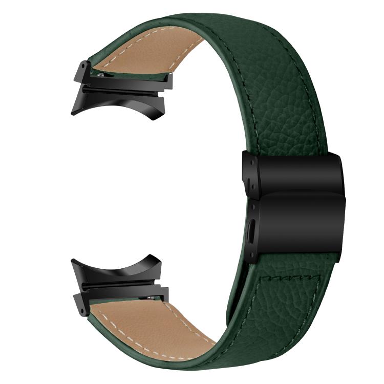 Correa de cuero con hebilla trasera de tortuga negra y textura de lichi para Samsung Galaxy Watch 7 (40/44 mm, verde)