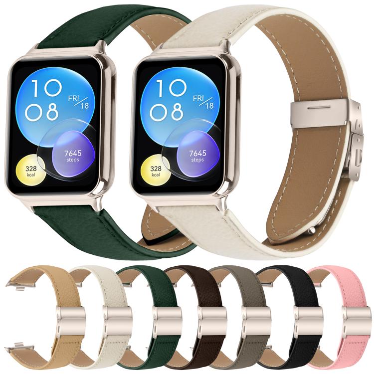 Correa de cuero con hebilla trasera de tortuga y textura de lichi para Xiaomi Smart Band 9 Pro y Redmi Watch 5 (gris)