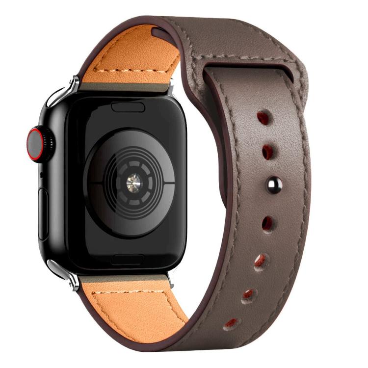 Correa de cuero genuino con hebilla inversa para Apple Watch de 46 mm, 49 mm, 45 mm y 44 mm (color café)