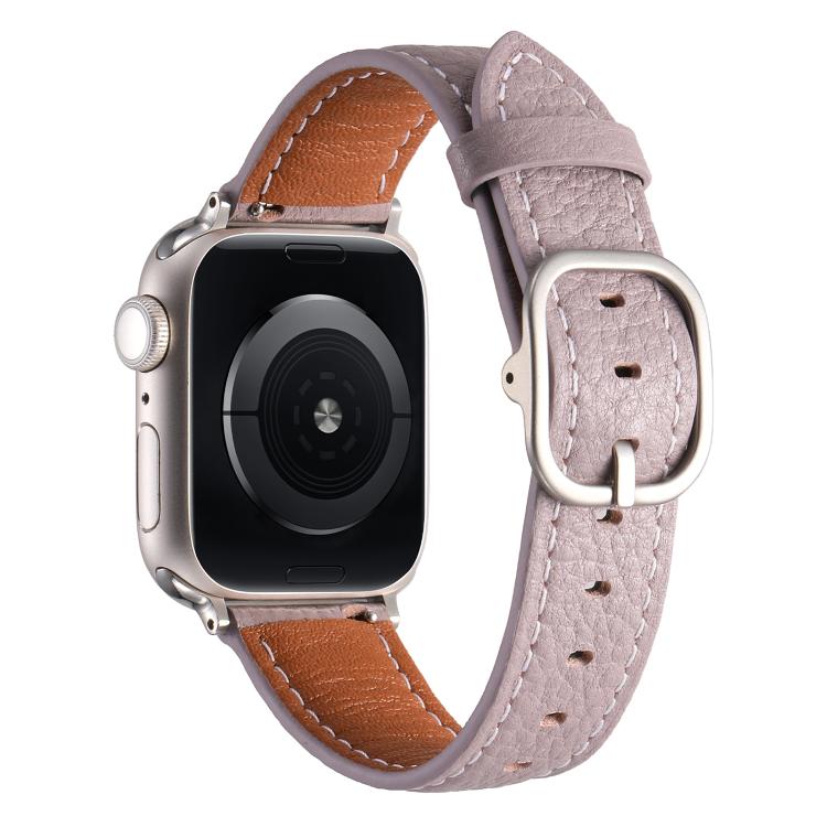 Correa de cuero genuino con textura de lichi y hebilla cuadrada para Apple Watch de 42 mm, 41 mm, 40 mm y 38 mm (morado brumoso)