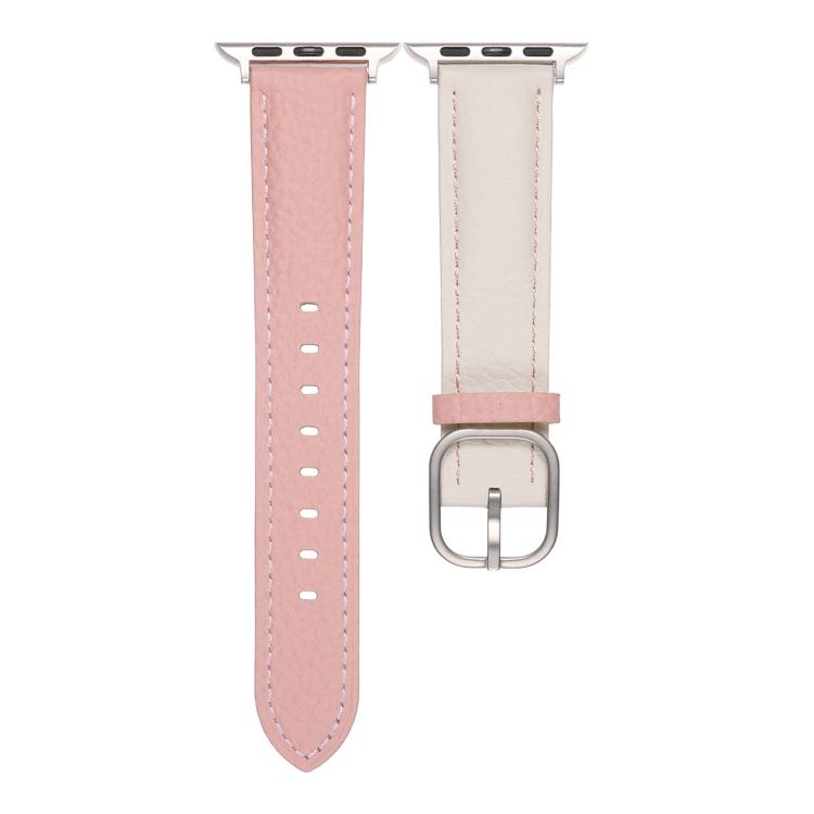 Correa de cuero genuino con textura de lichi y hebilla cuadrada para Apple Watch de 46 mm, 49 mm, 45 mm y 44 mm (blanco y rosa)