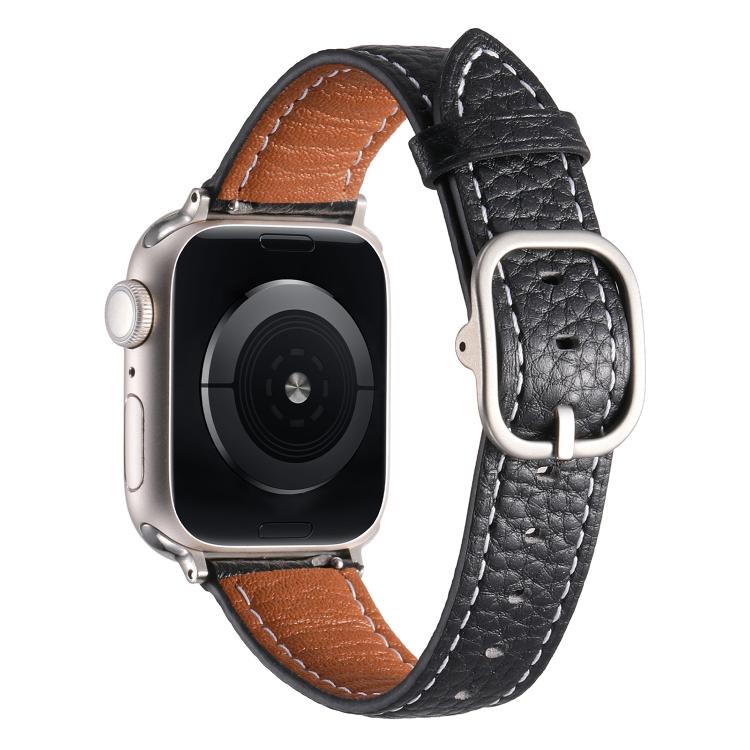 Correa de cuero genuino con textura de lichi y hebilla cuadrada para Apple Watch de 46 mm, 49 mm, 45 mm y 44 mm (negra)