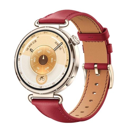Correa de cuero suave con hebilla dorada para Huawei Watch GT 6 de 41 mm (rojo oscuro)