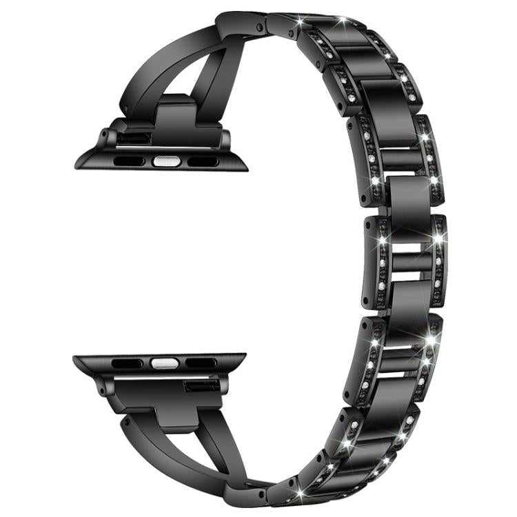 Correa de metal con diamantes de una sola fila en forma de X para Apple Watch 38/40/41/S10 de 42 mm (negro)