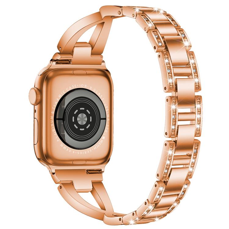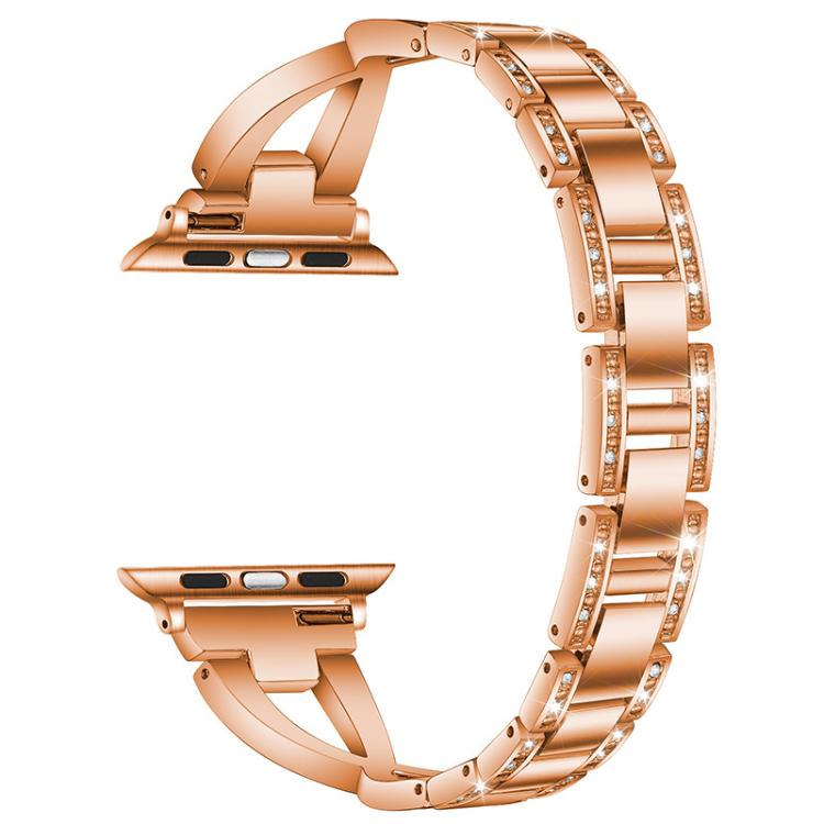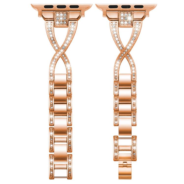 Correa de metal con diamantes de una sola fila en forma de X para Apple Watch de 42, 44, 45, 46 y 49 mm (oro rosa)