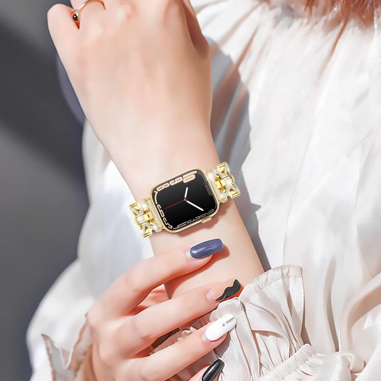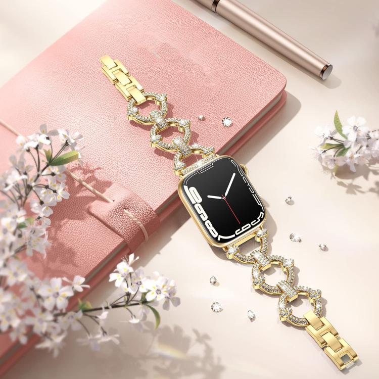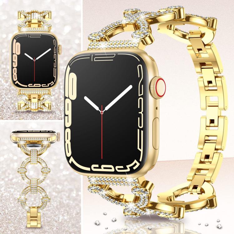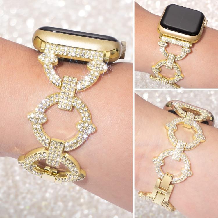Correa de metal con diamantes en forma de O para Apple Watch 38/40/41/S10 de 42 mm (dorada)