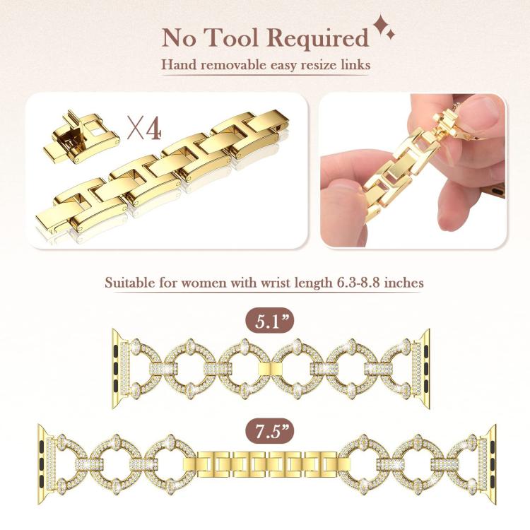 Correa de metal con diamantes en forma de O para Apple Watch de 42, 44, 45, 46 y 49 mm xDfind (dorada)