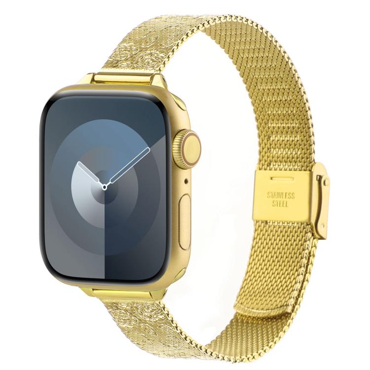 Correa de metal milanesa con relieve para Apple Watch de 46 mm, 49 mm, 45 mm y 44 mm (dorado rosa)
