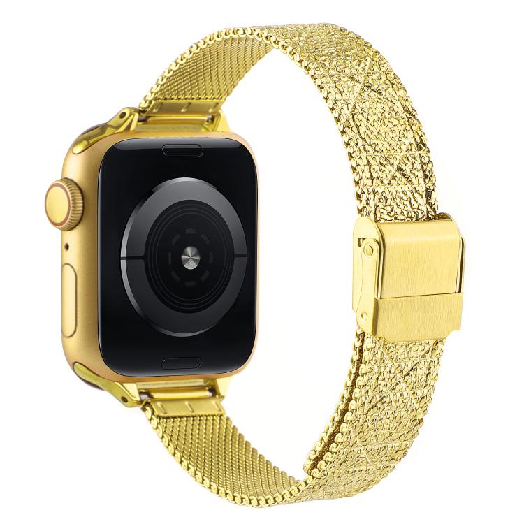 Correa de metal milanesa con relieve para Apple Watch de 46 mm, 49 mm, 45 mm y 44 mm (rombo dorado)