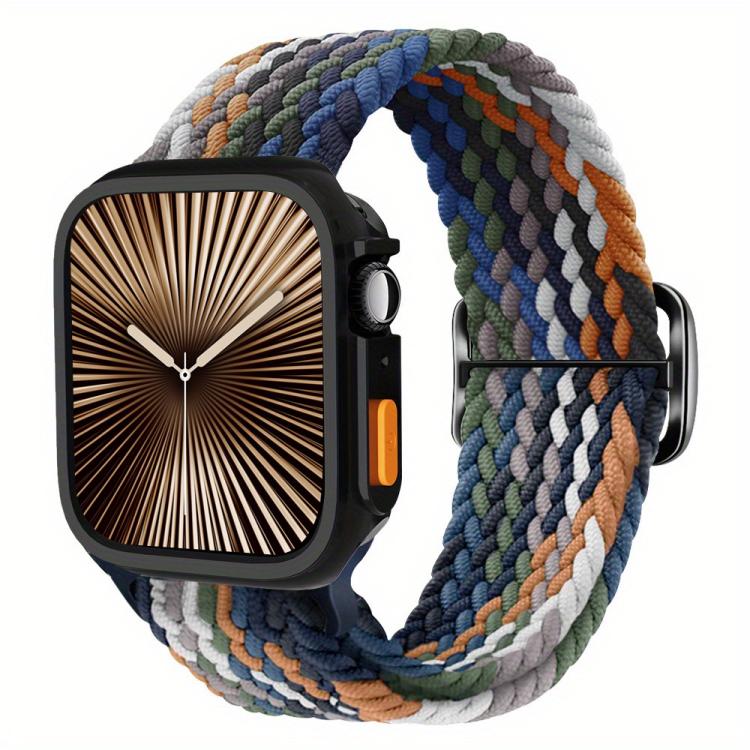 Correa de nailon con hebilla de escalera para Apple Watch de 44 mm/45 mm y funda de TPU (color denim)