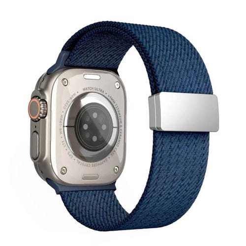 Correa de nailon elástica de cuatro hilos con cierre magnético de un solo color para Apple Watch de 42 mm, 41 mm, 40 mm y 38 mm (azul)