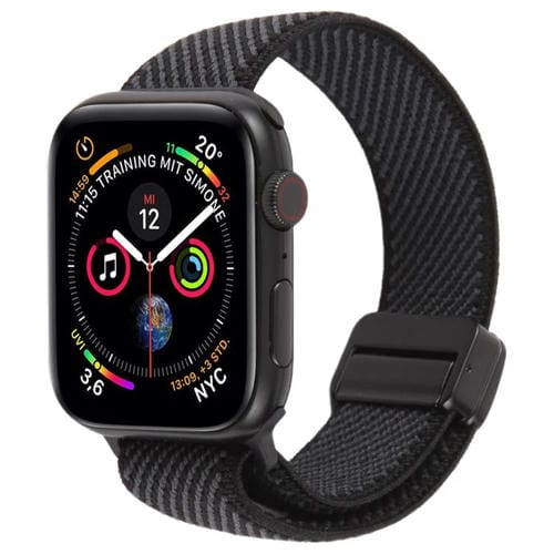 Correa de nailon elástico bicolor con hebilla magnética para Apple Watch de 42 mm, 41 mm, 40 mm y 38 mm (negro y gris).