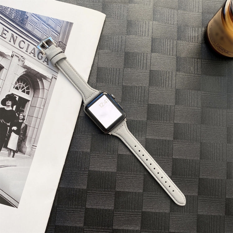 Correa de reloj con textura de lichi de cintura pequeña para Apple Watch Ultra 49 mm / Series 8 y 7 45 mm / SE 2 y 6 y SE y 5 y 4 44 mm / 3 y 2 y 1 42 mm (gris)