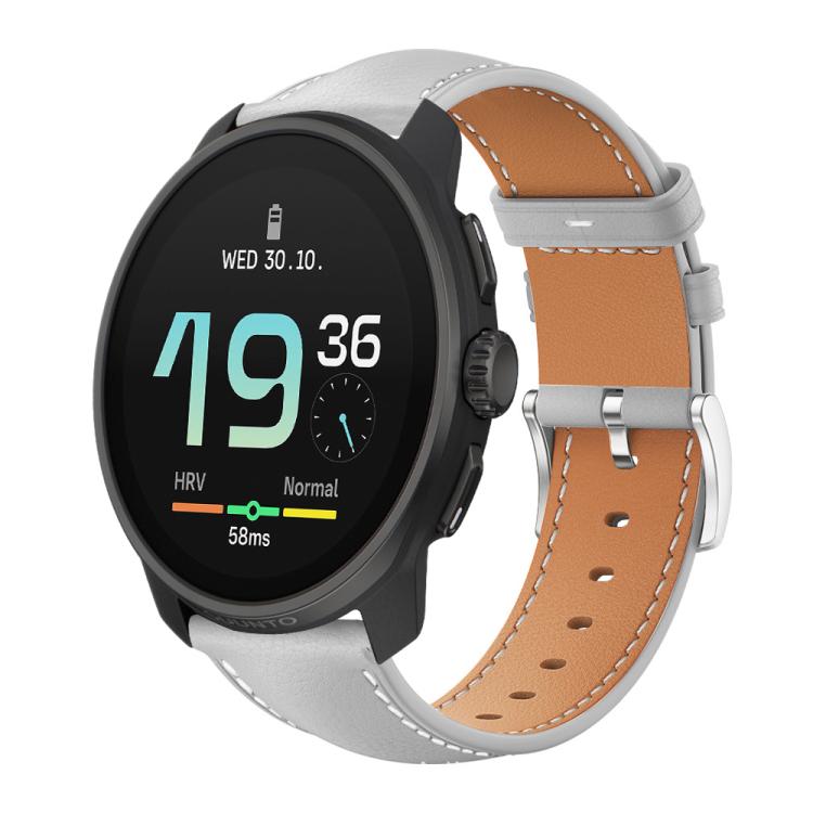 Correa de reloj de 22 mm para Suunto Race S / Race / 9 Peak / 5 Peak xDfind Flat Head de piel de tiburón negro de grano fino (gris)