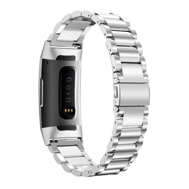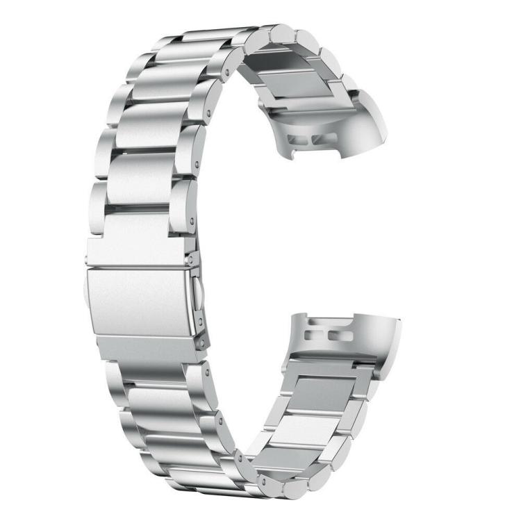 Correa de reloj de aleación de titanio con hebilla plana de tres cuentas para Fitbit Charge 4/3 (plateada)