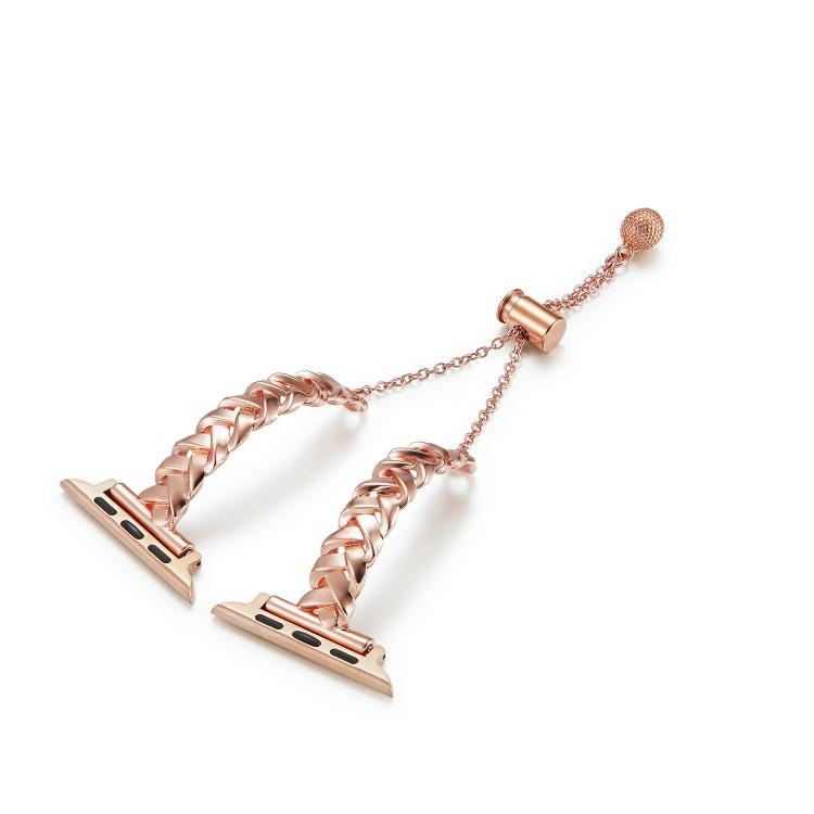 Correa de reloj de aleación de zinc brillante y metal trenzado para Apple Watch de 42 mm, 41 mm, 40 mm y 38 mm (oro rosa)