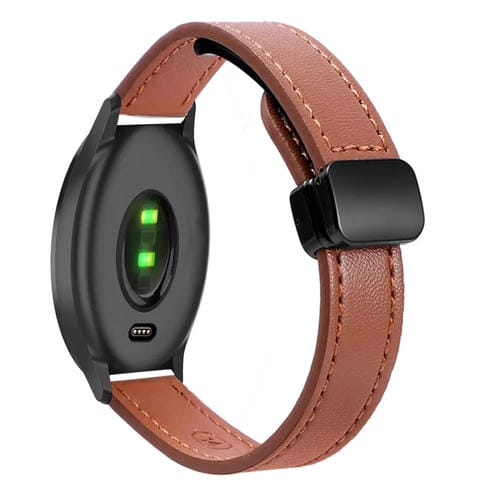 Correa de Reloj de Cuero Microfibra con Hebilla Magnética 20mm para Garmin Move Style (Marrón Moca)