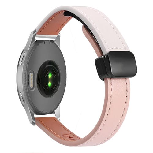 Correa de Reloj de Cuero Microfibra 18mm con Hebilla Magnética para Garmin Venu 2S (Rosa y Albaricoque)