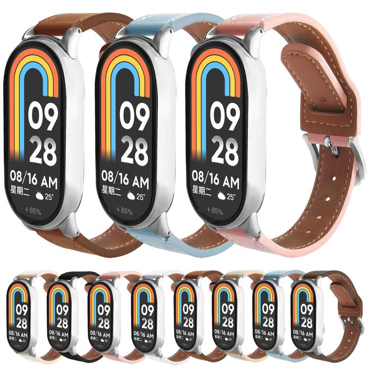 Correa de reloj de cuero de microfibra con hebilla plateada para Xiaomi Smart Band 9/9 NFC/8/8 NFC (rosa)