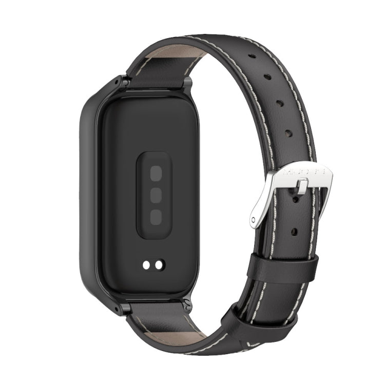 Correa de reloj de cuero genuino con carcasa de metal Mijobs para Xiaomi Smart Band 9 Active / Redmi Band 3 (negra)