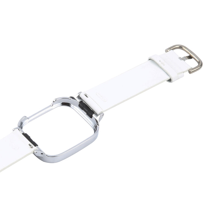 Correa de reloj de cuero genuino integrada con marco de metal para Redmi Watch 3 Lite (blanco)