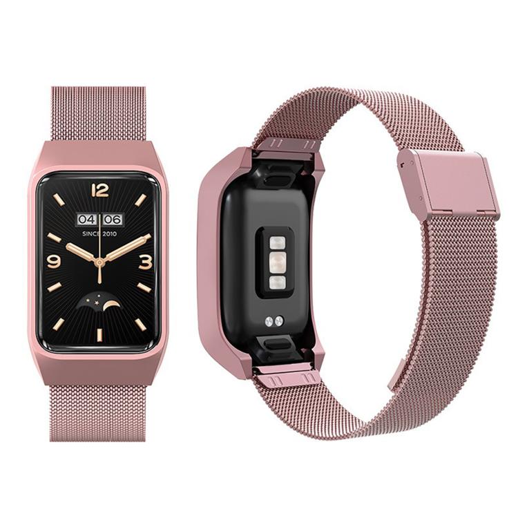 Correa de reloj de metal con hebilla milanesa integrada y marco de acero inoxidable para Xiaomi Mi Band 7 Pro (rosa)