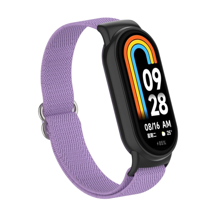Correa de reloj de nailon elástica lisa con tapón de plástico para Xiaomi Smart Band 9/8 (lavanda)