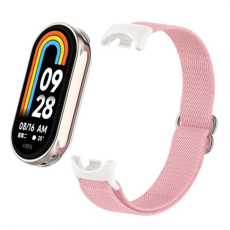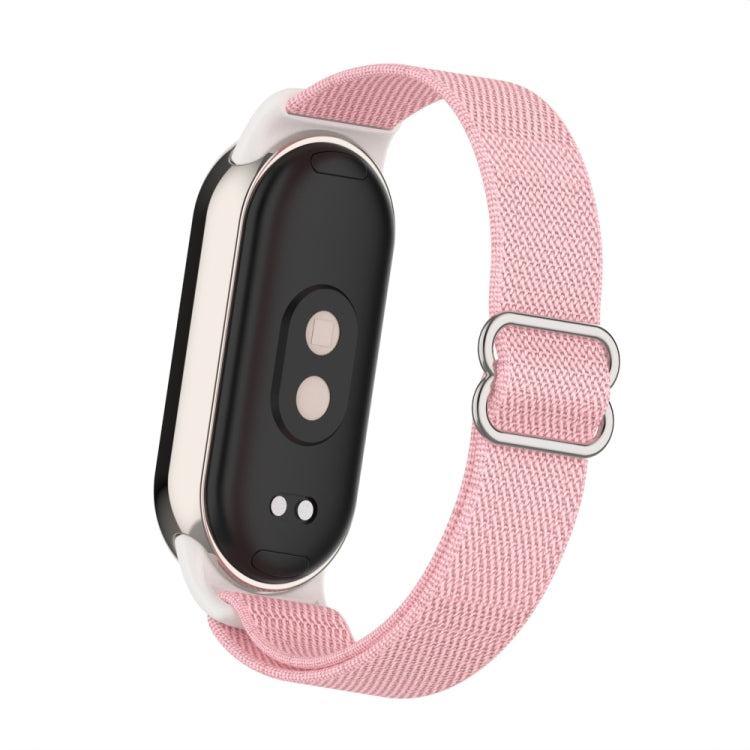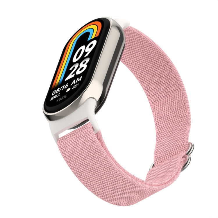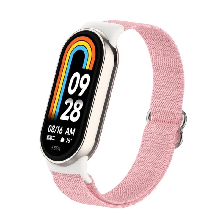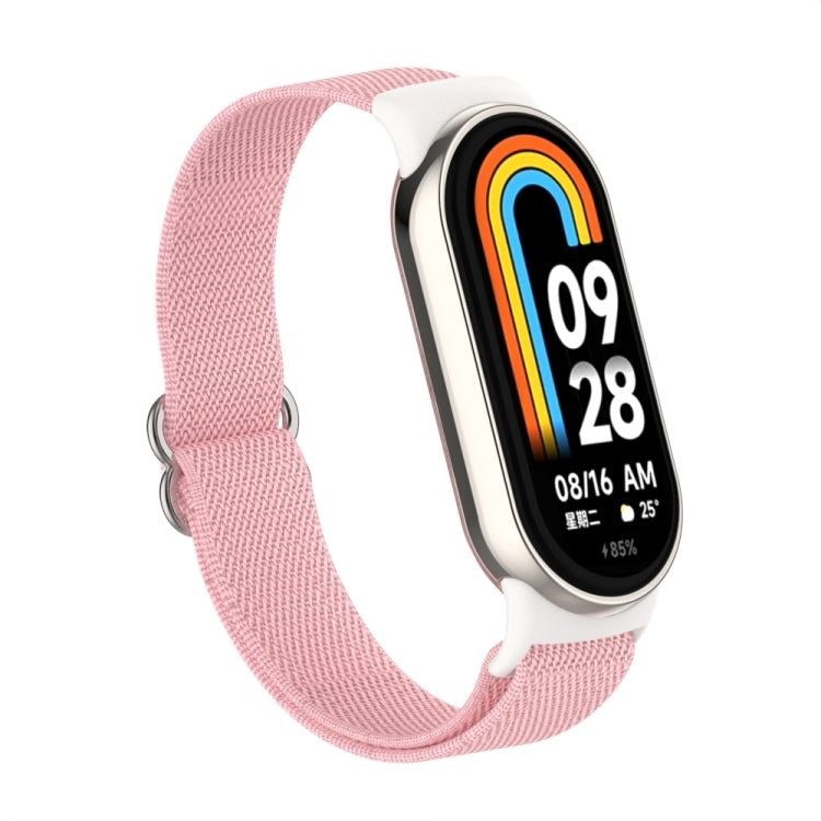Correa de reloj de nailon elástica lisa con tapón de plástico para Xiaomi Smart Band 9/8 (polvo de perla)