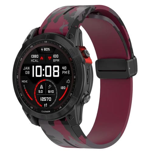 Correa de Reloj silicona Garmin Fenix 7 con hebilla magnética plegable (Camuflaje Rojo Vino)