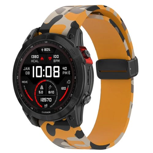 Correa de Reloj Silicona Garmin Fenix 7S Hebilla Plegable Magnética (Amarillo Camuflaje)