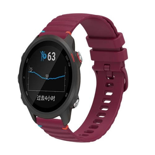 Correa de Reloj Silicona 20mm Garmin Forerunner 245 Music Puntadas Onduladas (Rojo Vino)