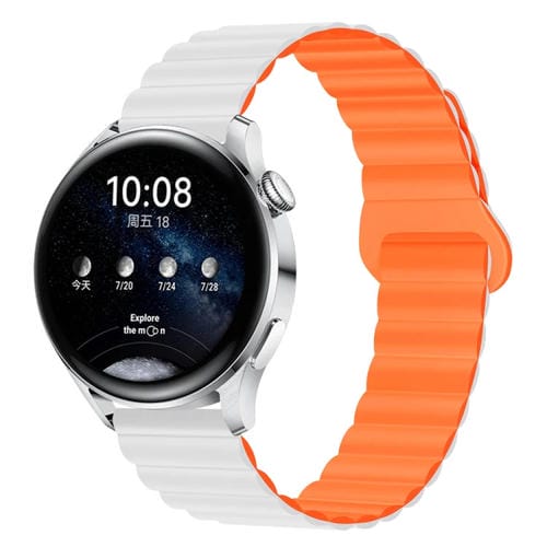 Correa de Reloj Silicona Magnética 22mm (Blanco y Naranja)
