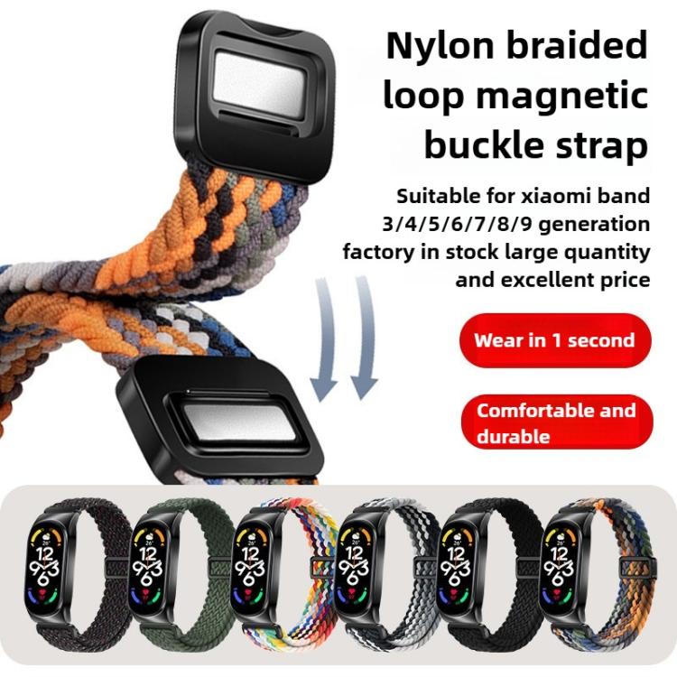 Correa de reloj elástica trenzada de nailon con hebilla magnética y marco de metal para Xiaomi Smart Band 9/8 (negro Starlight)
