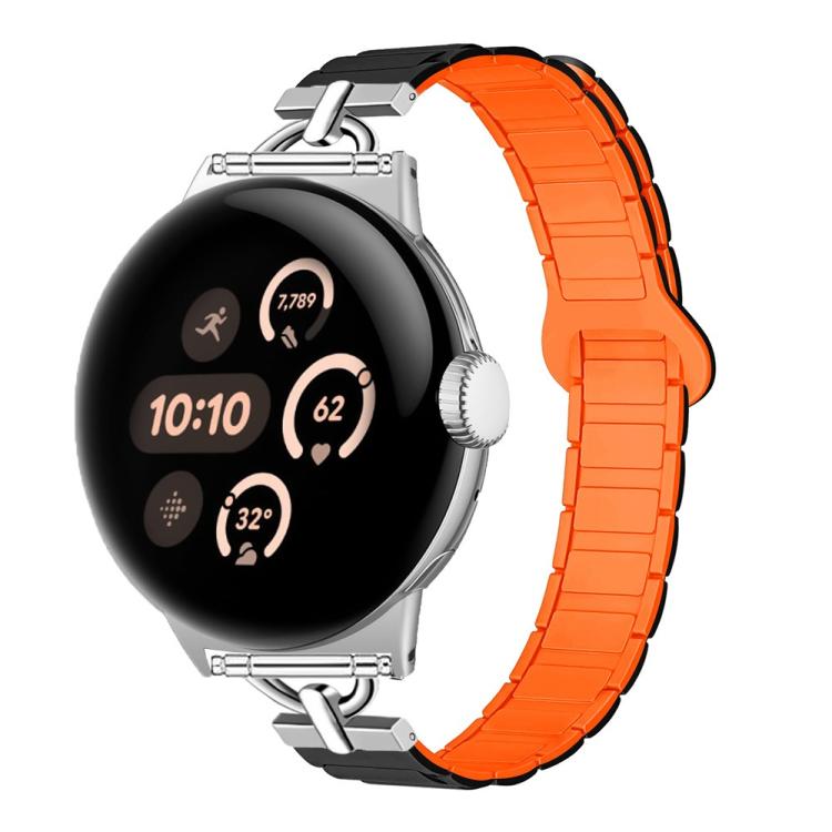 Correa de reloj magnética de silicona con tres cuentas en forma de D de 45 mm para Google Pixel Watch 4/3 (negro/naranja)