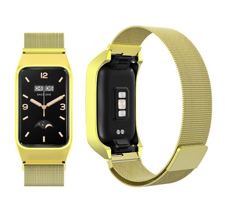 Correa de reloj magnética milanesa de acero inoxidable integrada para Xiaomi Mi Band 7 Pro (dorada)