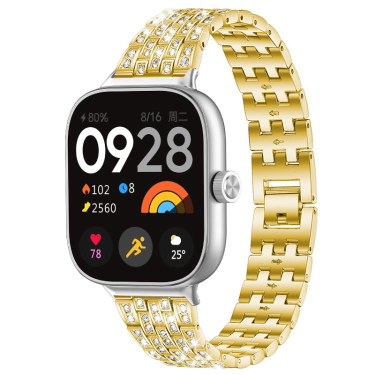 Correa de reloj metálica dorada xDfind de cinco cuentas con diamantes para Xiaomi Band 9 Pro/8 Pro/Redmi Watch 6/5/4